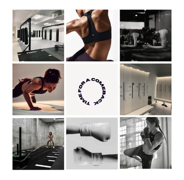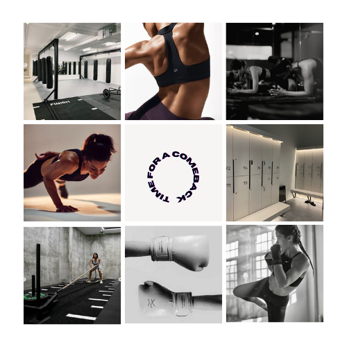Designed for a female-only boxing gym launching in Skopje, the social media identity balances modern minimalism with a moody edge.