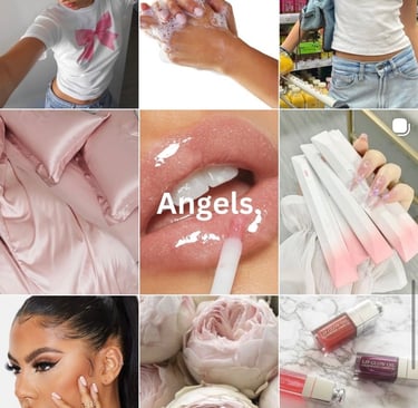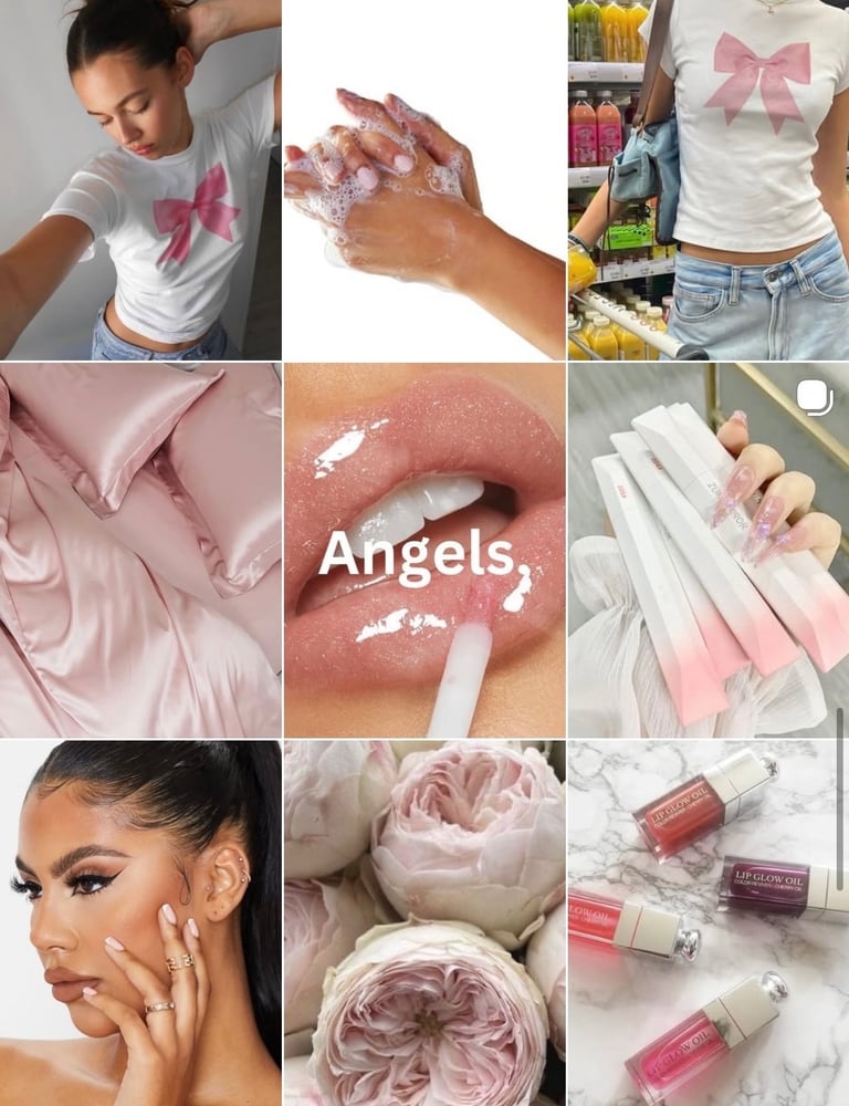 The concept for the branding for Angels Shop used a soft pink color palette combined with Y2K-inspired design elements to appeal to younger women.