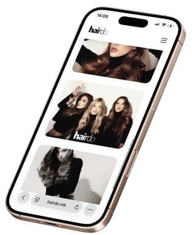 The Hairdo website concept revolves around modern luxury, trust, and bold visual assurance, prioritizing the work itself over dense text or intricate designs.